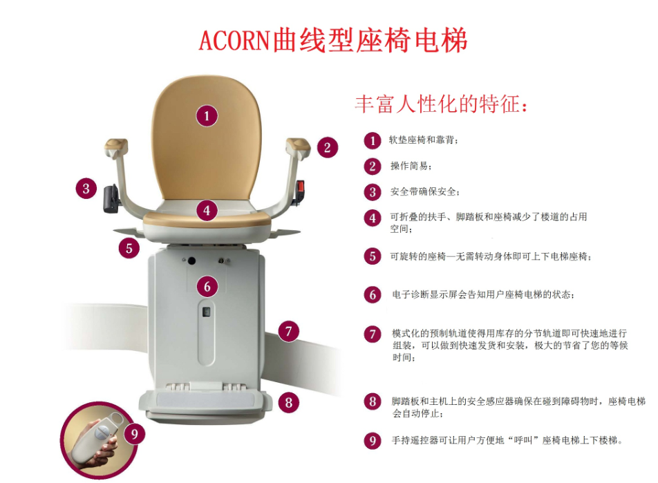 9. 手持遙控器可讓用戶(hù)方便地“呼叫”座椅電梯上下樓梯。